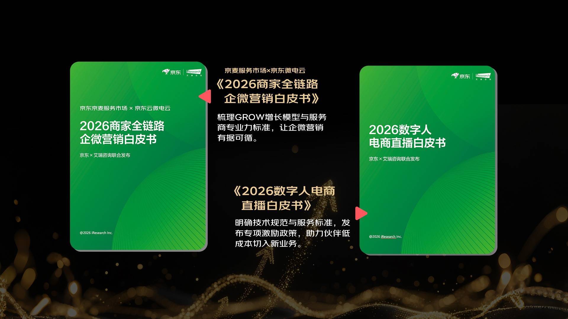 技术不应停留在概念,而应沉淀为经营的方法论。大会期间,京东发布了《2026数字人电商直播白皮书》与《京东京麦服务市场 × 京东微电云 2026商家全链路企微营销白皮书》两份白皮书。通过技术标准与 GROW 增长模型的沉淀,将复杂的 AI 运营与企微营销逻辑转化为标准化的实操手册,帮助商家更好的完成全链路运营和业绩增长。